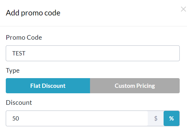 2. Select either Flat Discount or Custom Pricing (see description below).